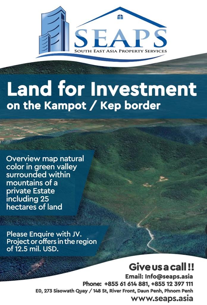 25 Hectares of land situated in a green valley on the Kampot/Kep border surrounded by mountains of a private estate